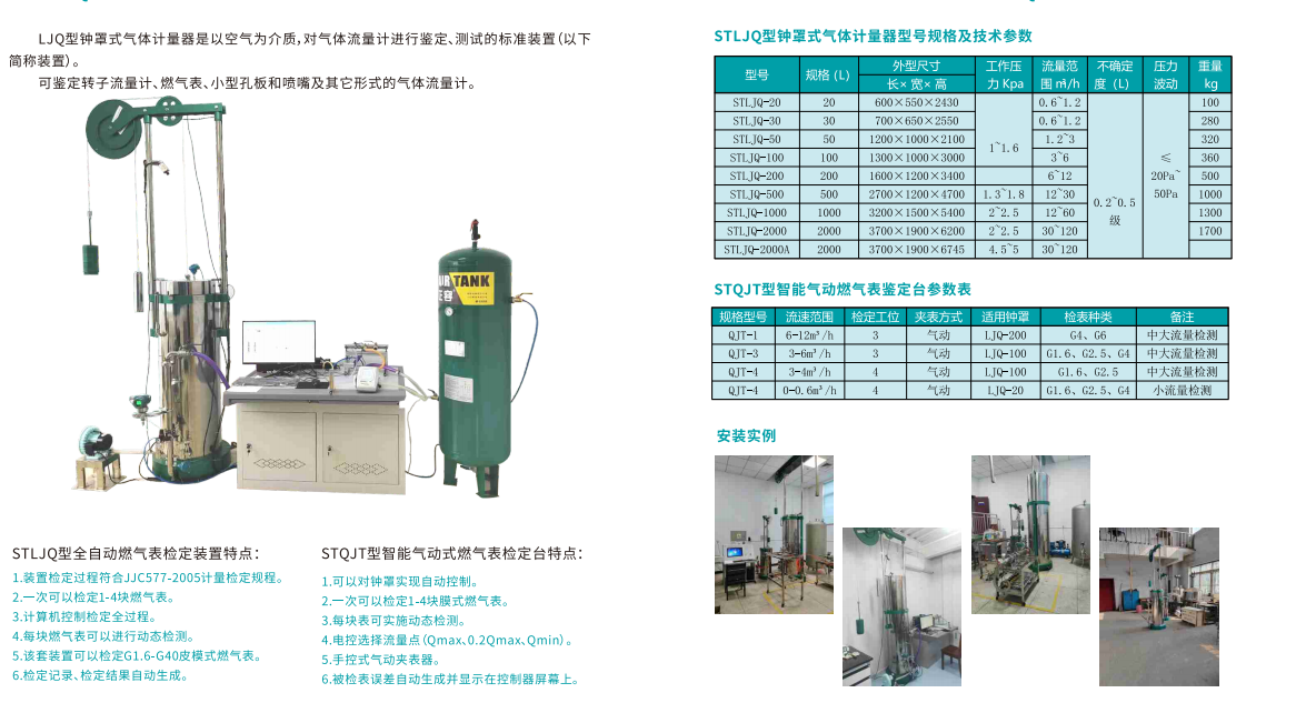 可檢定轉子流量計、燃氣表、小型孔板和噴嘴及其它形式的氣體流量計。